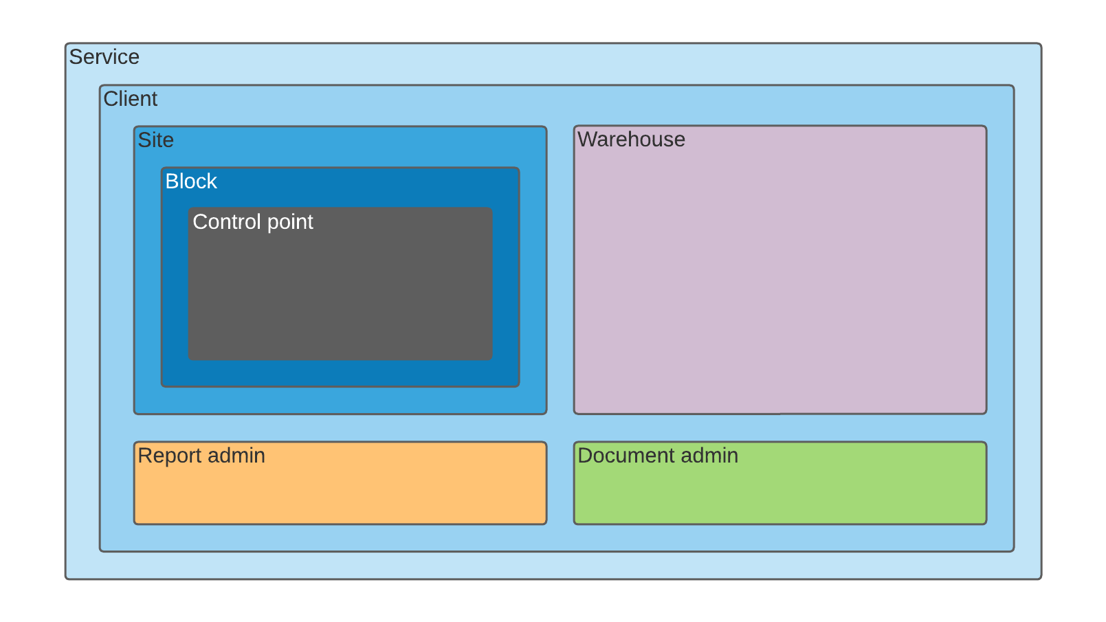 Client admins: full client account, all usage rights levels (granted automatically also to all warehouses of the client)