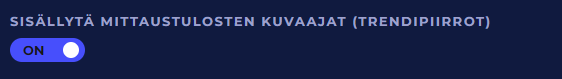 On-off-kytkimen ollessa on-asennossa sisällytetään raporttiin jokaiselta suorituspisteeltä kuvaaja eli trendipiirto, joka sisältää mittaustulokset raportin aikajaksolta. Kuvaaja sisällytetään riippumatta Mittaustulosten keskiarvoistus -kohdan valinnasta.