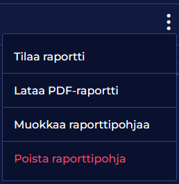 Avaa raporttipohjan valikko napsauttamalla oikeassa reunassa olevaa kolmella pisteellä merkittyä valikkopainiketta.