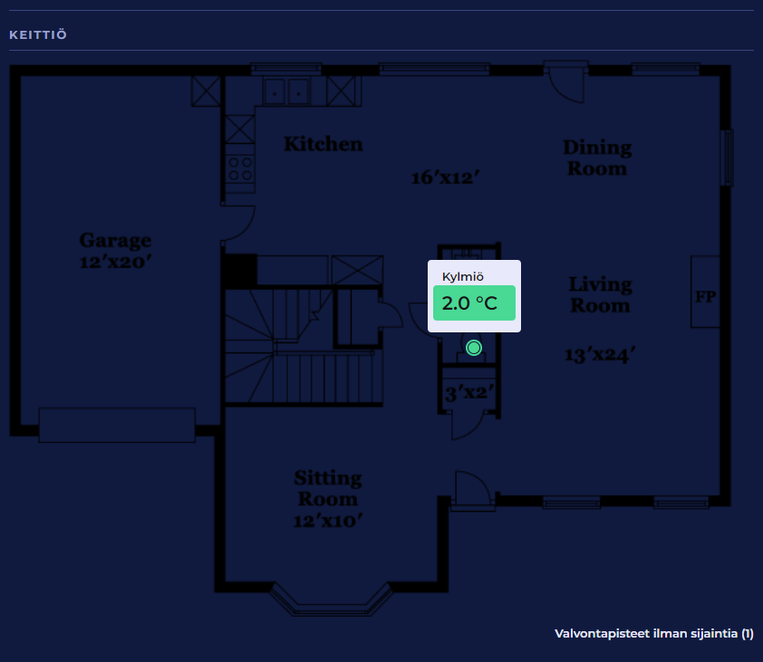 Niiden valvontapisteiden määrä, joille ei ole määritelty sijaintia pohjakuvanlla, näytetään pohjakuvan alapuolella. Vie kursori tämän tekstin päälle nähdäksesi näiden valvontapisteiden suorituspisteiden viimeisimmät mittausarvot.